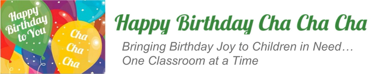 Your child's school class, the neighborhood book club, or your work team can together adopt a classroom, raising funds or collecting items to fill Cha Cha Cha bags for a class of 20 - 30 children in need of some birthday joy.
